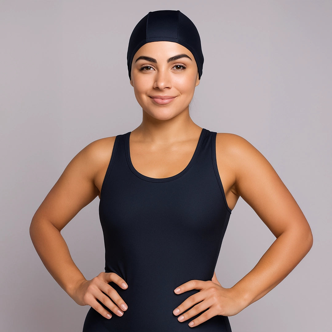 A fórmula da tranquilidade em piscinas com cloro, esta touca oferece proteção reforçada contra os efeitos da água clorada, prevenindo o ressecamento e a quebra dos fios.